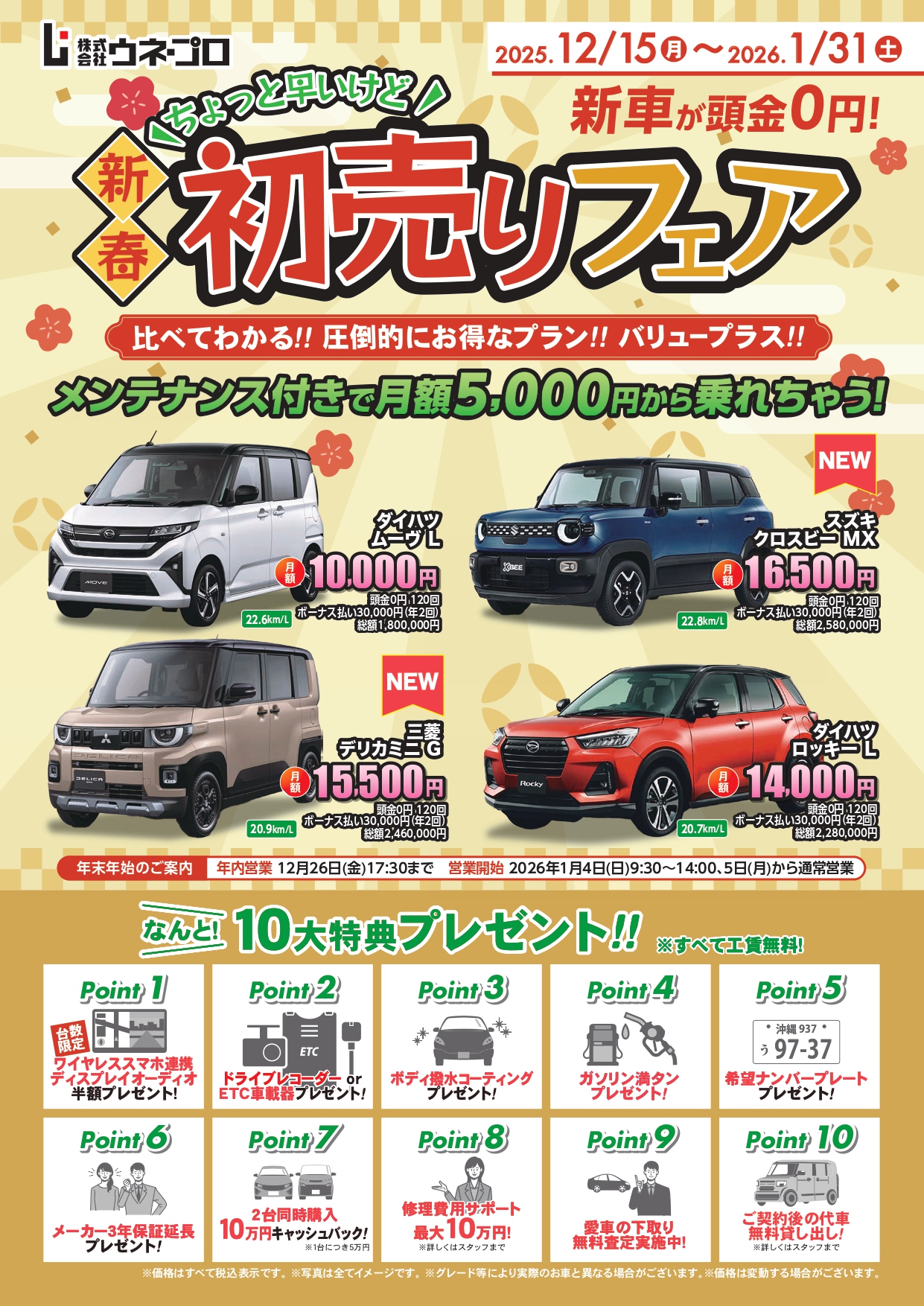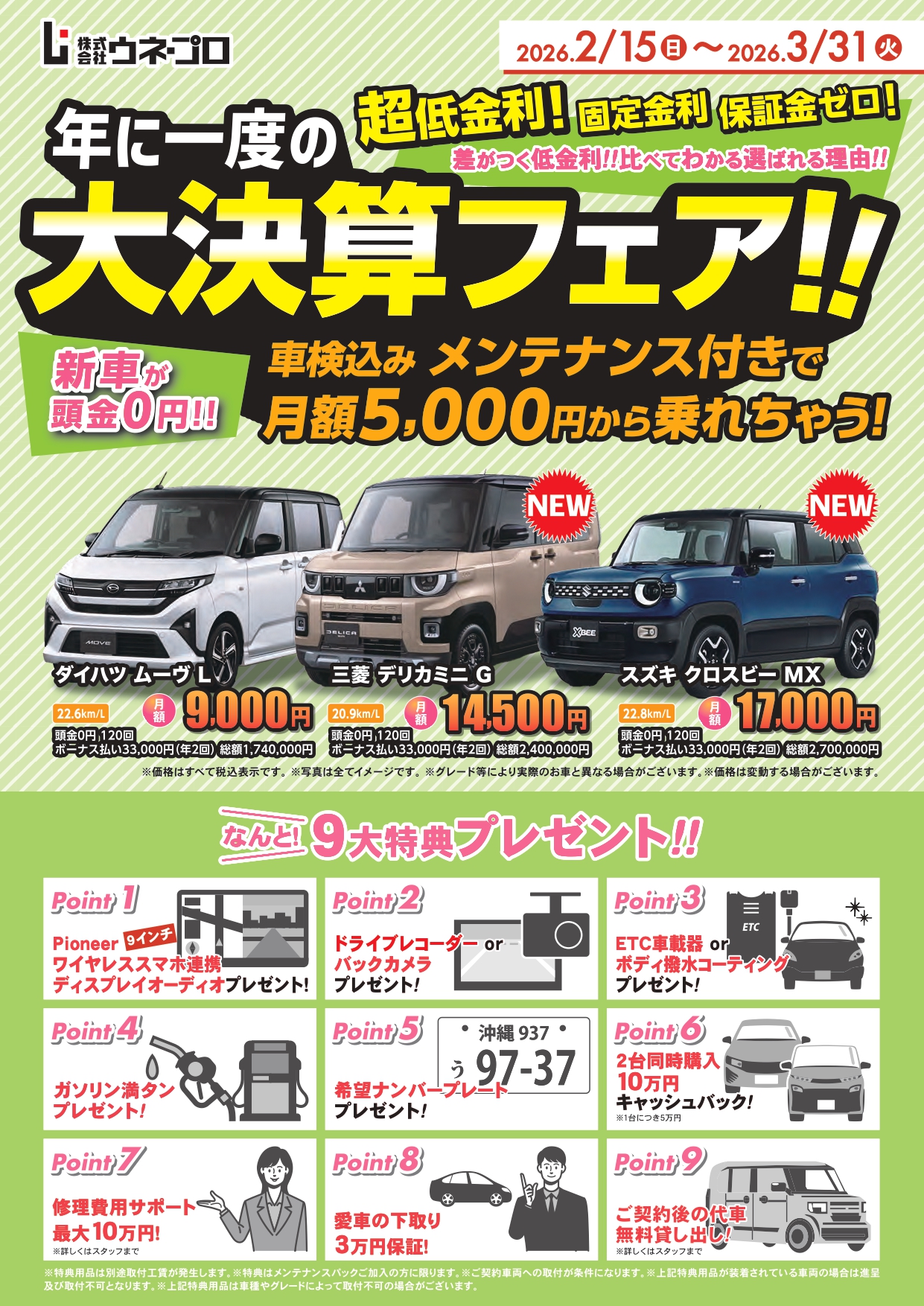 新車が頭金0円で 月々ラクラク!メンテナンス付きで安心!