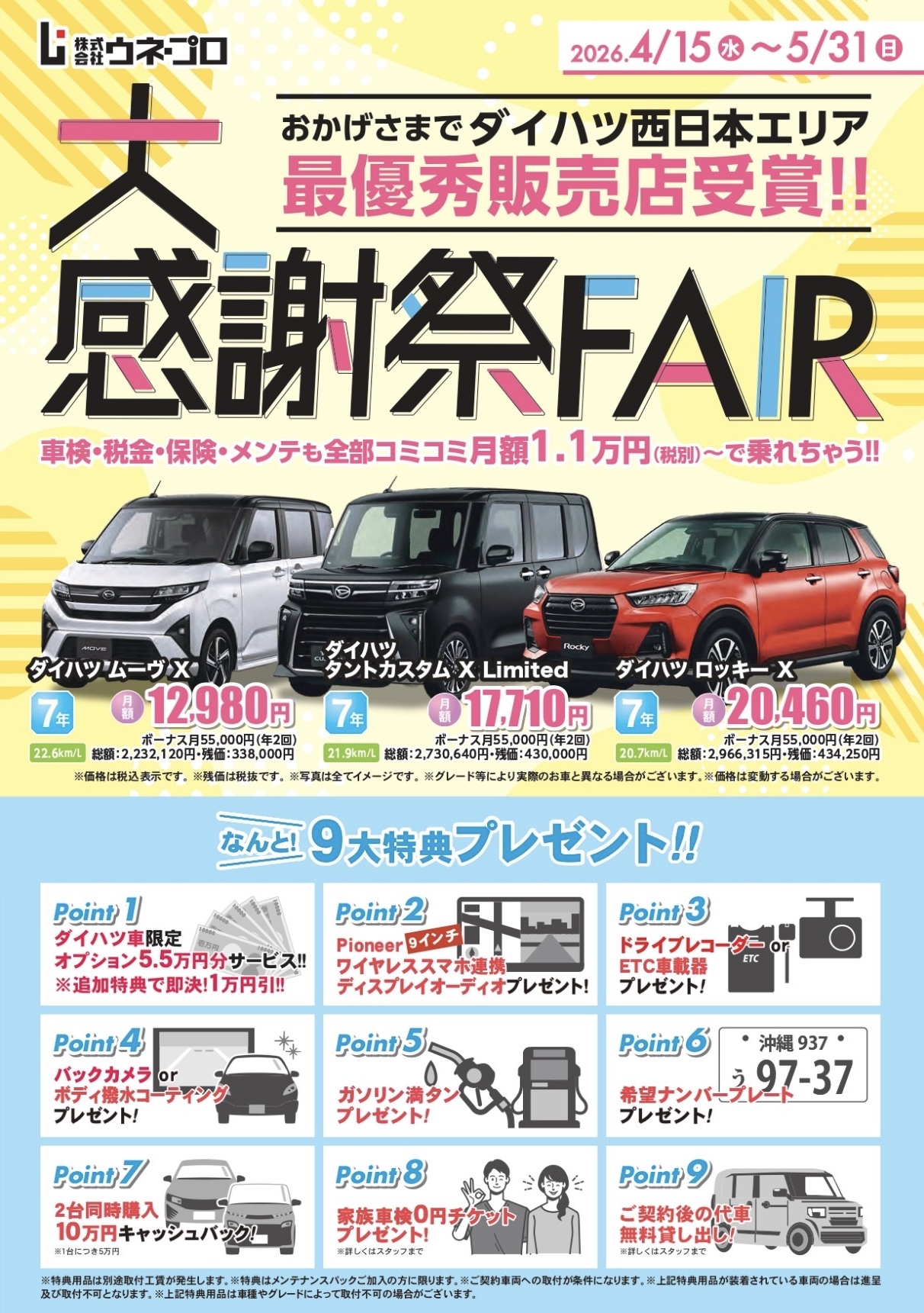 ウネ・プロで車検を受けるとお得な特典があります!